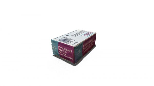 A box of paracetamol pills, a common over-the-counter medication for pain relief and fever reduction.