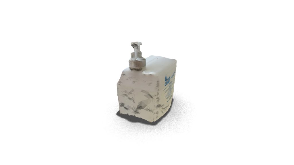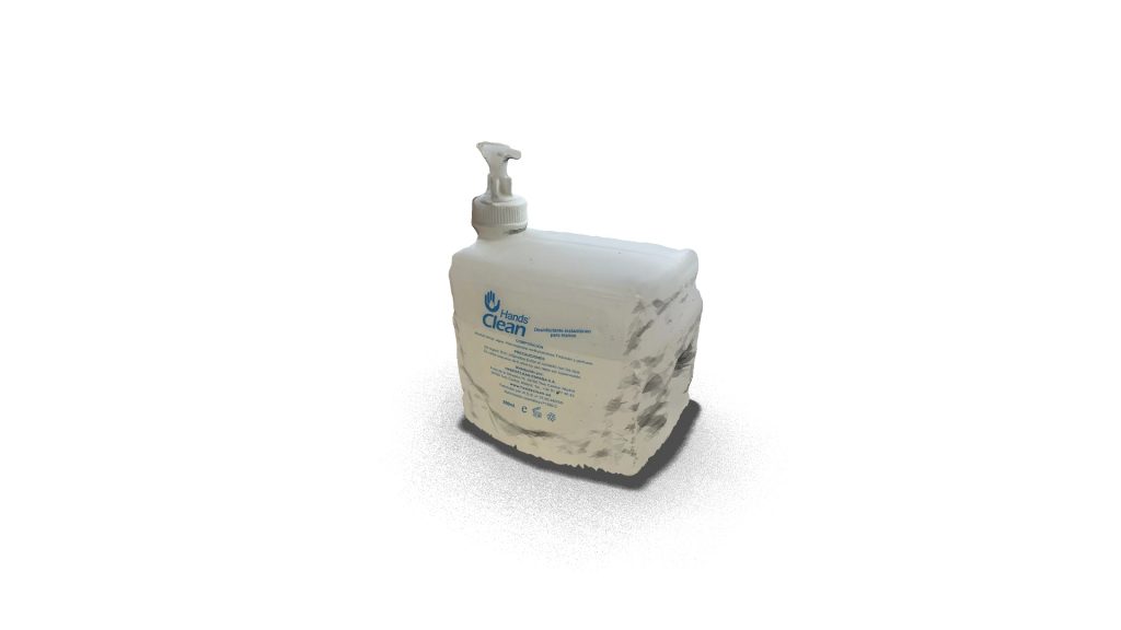 A model of a hand sanitizer bottle, used for maintaining hygiene by killing germs and bacteria.