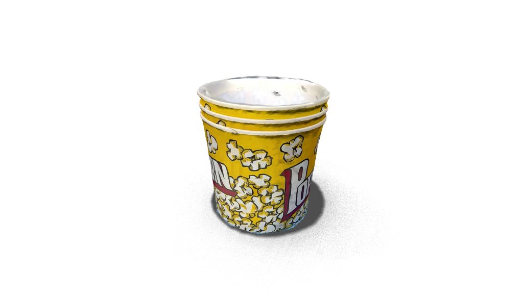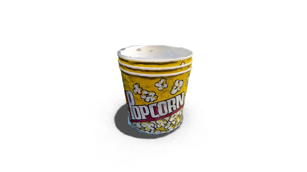A 3D model of a set of three popcorn boxes, typically associated with cinema and leisure activities