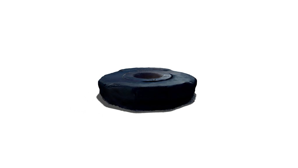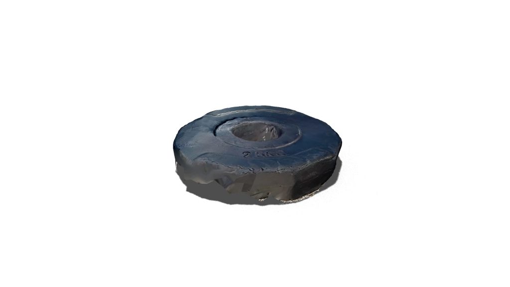 A model of a weight plate, used in weightlifting and strength training exercises.